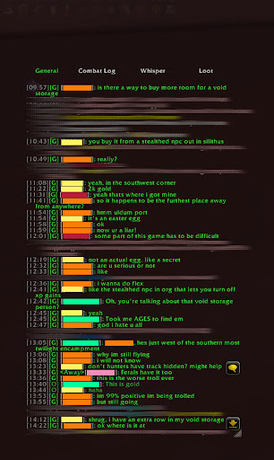 If only there was a way to get more void storage as my 'transmog closet' is rather full on several of my characters. I dream of the day there will be tabs in void storage. That we could label just like a guild bank. One for weapons, one for red-colored gear, one for purple-colored gear, etc. Or if it was only a few tabs, then one for weapons, one for full outfits, one for incomplete outfits. Hmm. Yeah. I dream of this